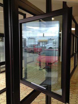 7505 Vertical/Horizontal Pivot (VP-HC 45) The window overall frame depth is 2 1/4". Accepts various glazing options from 3/16 to 1". These windows accommodate large vent sizes with ease of washing exterior surface of glass. Marlin offers a full line of thermally efficient, heavy commercial window systems by using a rigid polyurethane "thermal barrier" as an integral part of the window extrusions. These high performance windows will fulfill both your architectural and mechanical design requirements. Each Marlin heavy commercial window is custom factory-fabricated using heavy duty Bronze Craft hardware and positive sealing weatherstripping to ensure long lasting superior performance. A complete line of accessory extrusions are available to meet various installation requirements. Specifications GENERAL Projected and casement, fixed or pivot windows shall be Marlin series #7505 as manufactured by Marlin windows, and conform to AAMA/NWWDA -101-I.S.2-97 AW80 (HC45 for pivot). Series #7505 shall have a condensation factor of 56. MATERIALS All frame and sash members shall be aluminum extrusions of 6063-T5 alloy & temper with a minimum wall thickness of .094". Frame and sash members shall have a rigid polyurethane "thermal-barrier" as an integral part of the extrusion which eliminates all direct contact between interior and exterior aluminum sections. Glazing stops to be extruded aluminum with a minimum wall thickness of .050". FINISH Standard architectural Class II anodic color conforming to Aluminum Association AA-M12-C22-A34 for dark bronze or AA-M12-C22-A31 for clear anodize. (Architectural Class I anodic finishes and organic coatings available). CONSTRUCTION Frame members shall be 2 1/4" or 3 3/8" depth. Frame and vent corners shall be fabricated to form tight mitered joints. All intermediate frame members shall be coped to form tight butt joints where joined to perimeter members. All joinery fastened securely with stainless steel self-tapping screws and sealed to prevent moisture and air infiltration. Extruded aluminum glass stops shall be fabricated to form tight butt-joints. Maximum vent size 66" x 36". PROJECTED HARDWARE Projected shall be balanced with two heavy duty four bar friction hinges. Hinges shall be of stainless steel, and include a positive stop and an adjustable friction shoe. Locking hardware shall consist of cam handle locks and surface strikes. Handle, base & strike housing shall be cast white bronze with burnished finish. Roto operators and underscreen bar operators are available. CASEMENT HARDWARE Casement windows shall be supported by exposed hinges manufactured from cast bronze alloy and secured with concealed fasteners, or by heavy duty 4 bar concealed friction hinges. Roto type operation with locking handles and concealed strikes shall be standard with exposed hinges. Other variations of hardware and finish available. PIVOT HARDWARE Pivot vents shall rotate 180 degrees on cast white bronze pivots. Locking hardware shall consist of a project out handle on one side and a project in handle on the other side. Removable key custodial locks and limit devices are available options. WEATHERSTRIPPING A compression seal shall run continuously around entire perimeter of ventilator and frame opening of ventilator to form a double seal. GLAZING Marlin series #7505 windows shall accept glazing materials with nominal thickness of 1/4" & 1". OPTIONAL SCREEN Screen frames shall be fabricated from roll-form aluminum finish to match window. Screen cloth to be 18 x 16 fiberglass mesh held in the aluminum screen frame with a tight fitting continuous vinyl spline INSTALLATION Windows shall be installed straight, plumb, and level without twisting and securely anchored in place. Openings shall be properly prepared to provide sufficient space at jambs, head and sill to compensate for normal construction movement without affecting intended use. PROTECTION AND CLEANING The General Contractor shall provide adequate protection of the aluminum and glass surface from damage by grinding compound, lime, acids, cement or other contaminants. The General Contractor shall be responsible for final cleaning. © 2013 by Marlin Windows, Inc |